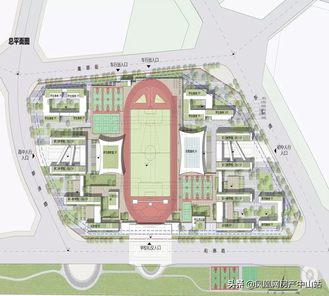 翠亨第一中学现正加快推进施工图设计,项目总体规模为72班初高中,其中初中36个班级,每班定额为50人,高中36个班级,每班定额为40人,预计新增学位共3240个!