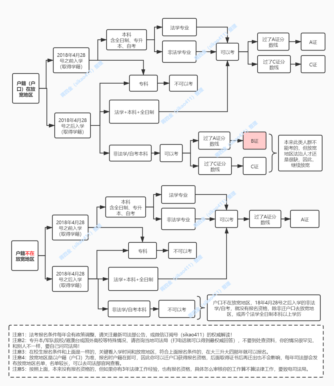 B证=成绩达标(分数达到客观题180+分且主观题108+分)+不符合新人新办法的报名条件(不符合全日制+法学+本科以上),但符合放宽的报名条件(即高等学校本科学历)