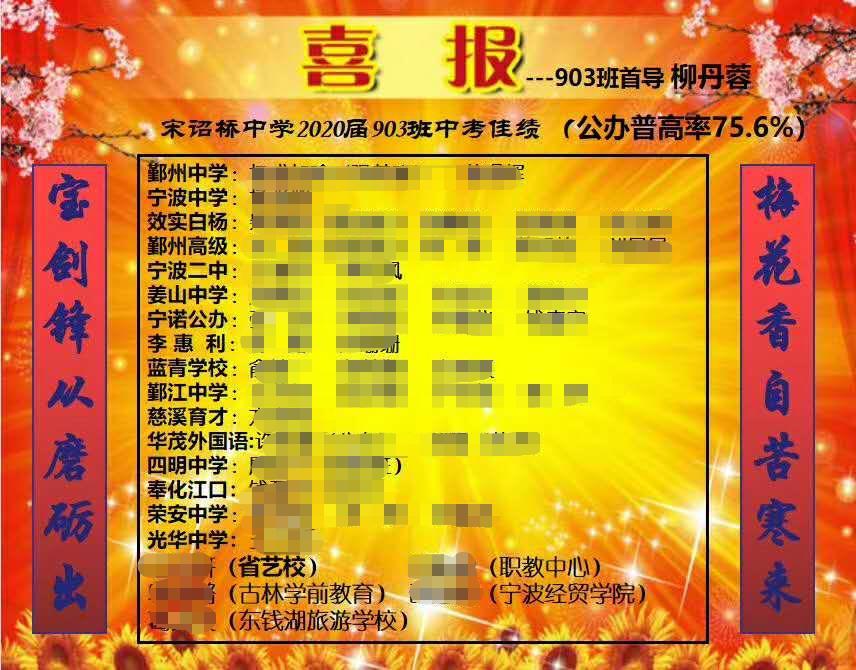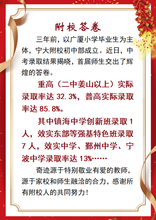 (1)考入强基创新班(效实中学、宁波中学、鄞州中学):13人