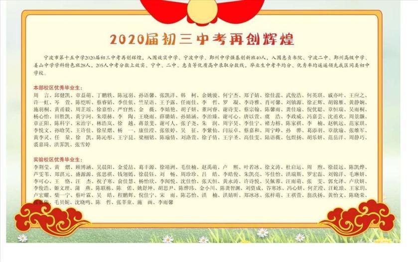 (1)鄞州中学入围15人,前20名3人,前100名6人