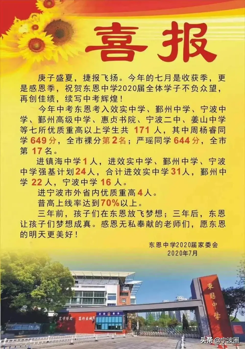 (3)镇海中学1人,效实东部7人,效实中学、鄞州中学、宁波中学录取率13%