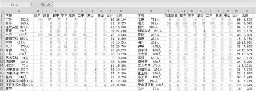 包含学校:四大名校(蛟川暂缺)+海曙区(5所中学)+江北区(6所中学)+鄞州区(6所中学)+高新区(1所中学)