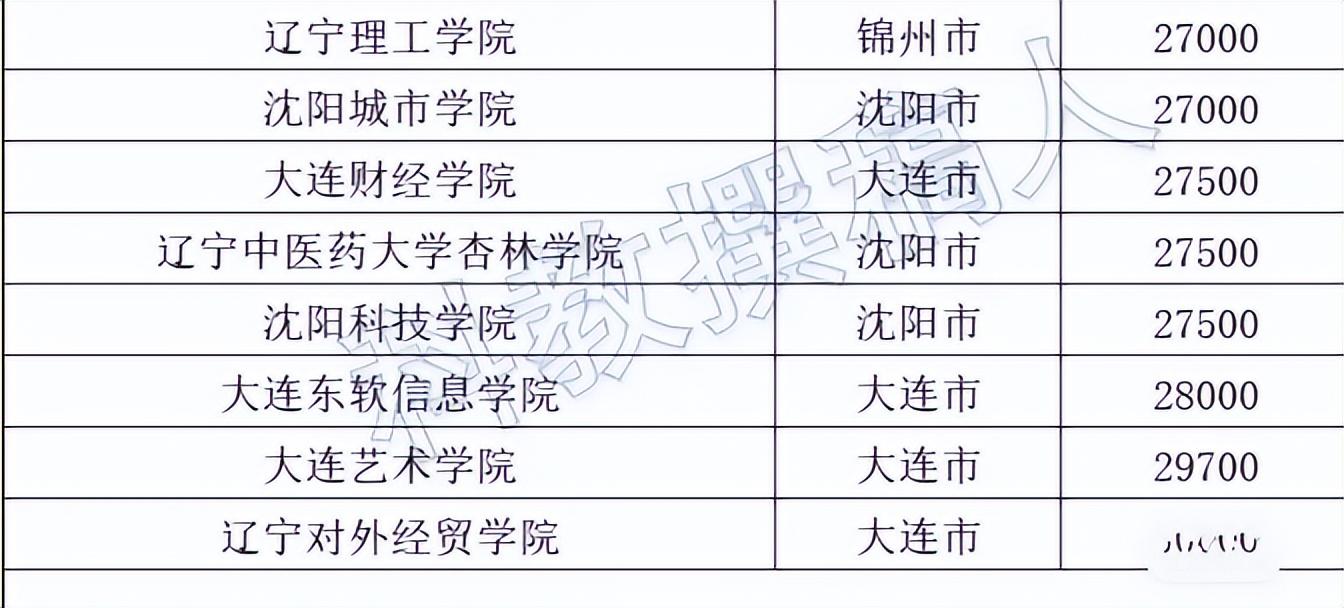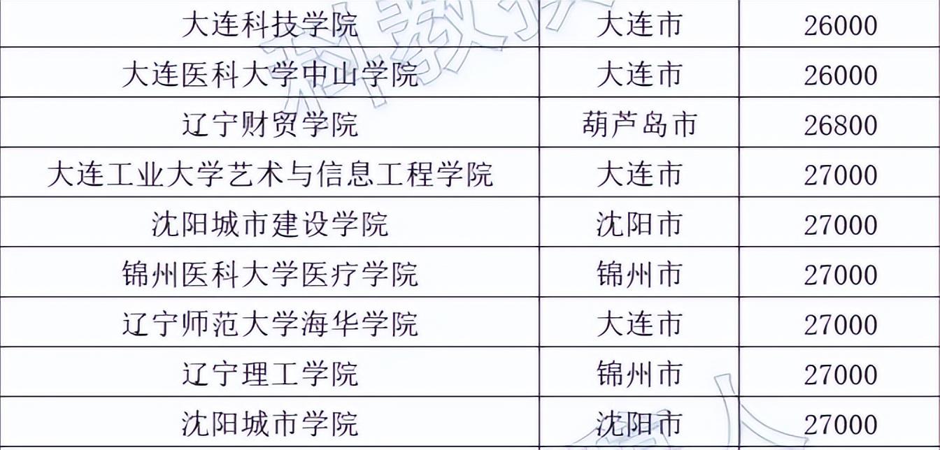 一年学费25000元的院校有2所,分别是大连理工大学城市学院和辽宁传媒学院,一年学费26000元的院校也有2所,分别是大连科技学院和大连医科大学中山学院。