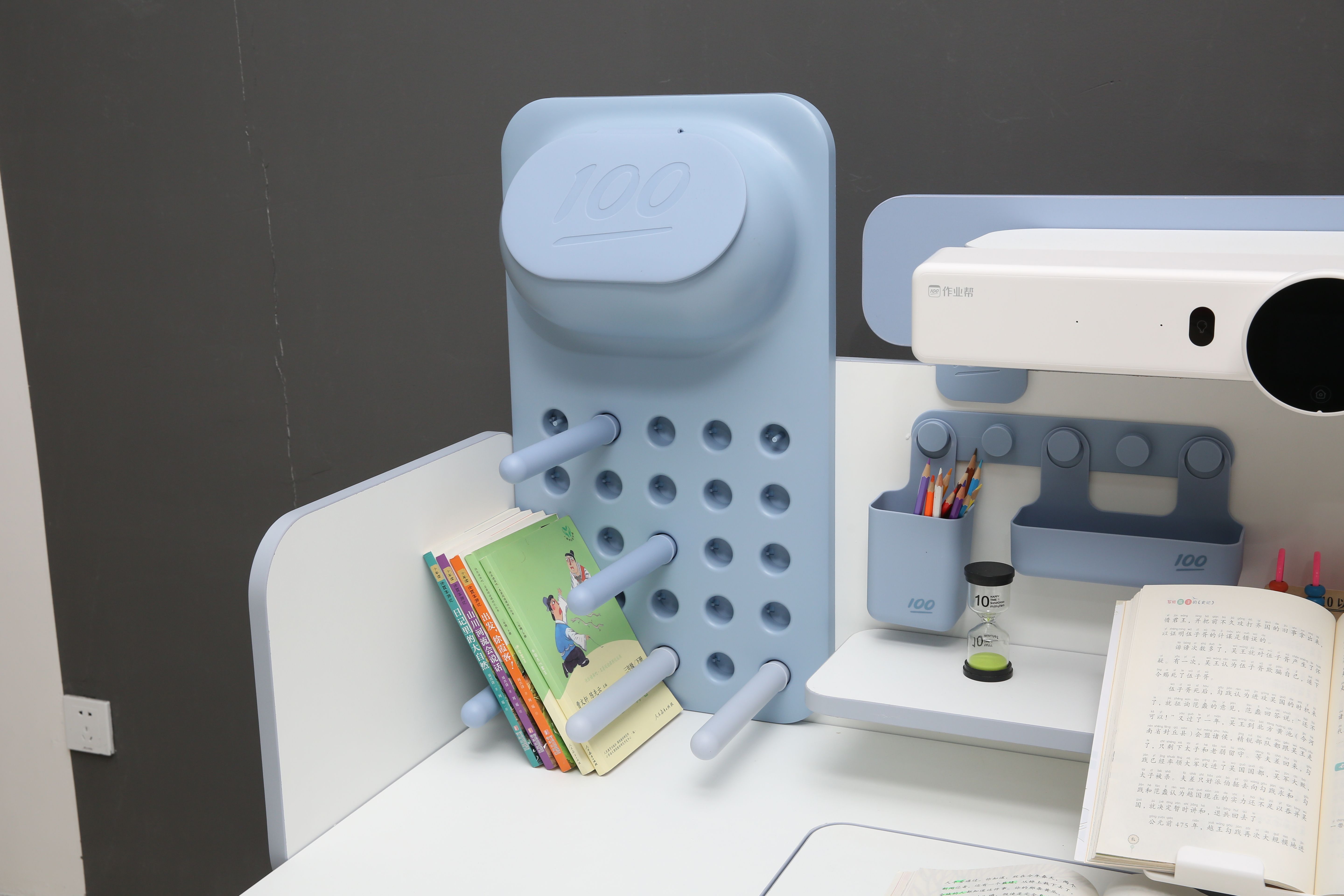 作业帮的AI学习桌还加长了干扰双翼,将小朋友的学习视角控制在黄金视野150°,减少外在干扰,让小朋友学习更加专注。桌面贴心设计了DIY的收纳设计,小朋友可以根据自己的使用习惯进行安排,也锻炼了小朋友的统筹规划和动手能力。