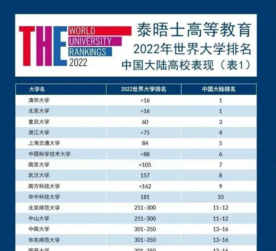 虽然四大权威榜单2022年的数据已出,但为了更具权威地分析清北与哈佛的差距,这里就不一一去说了。