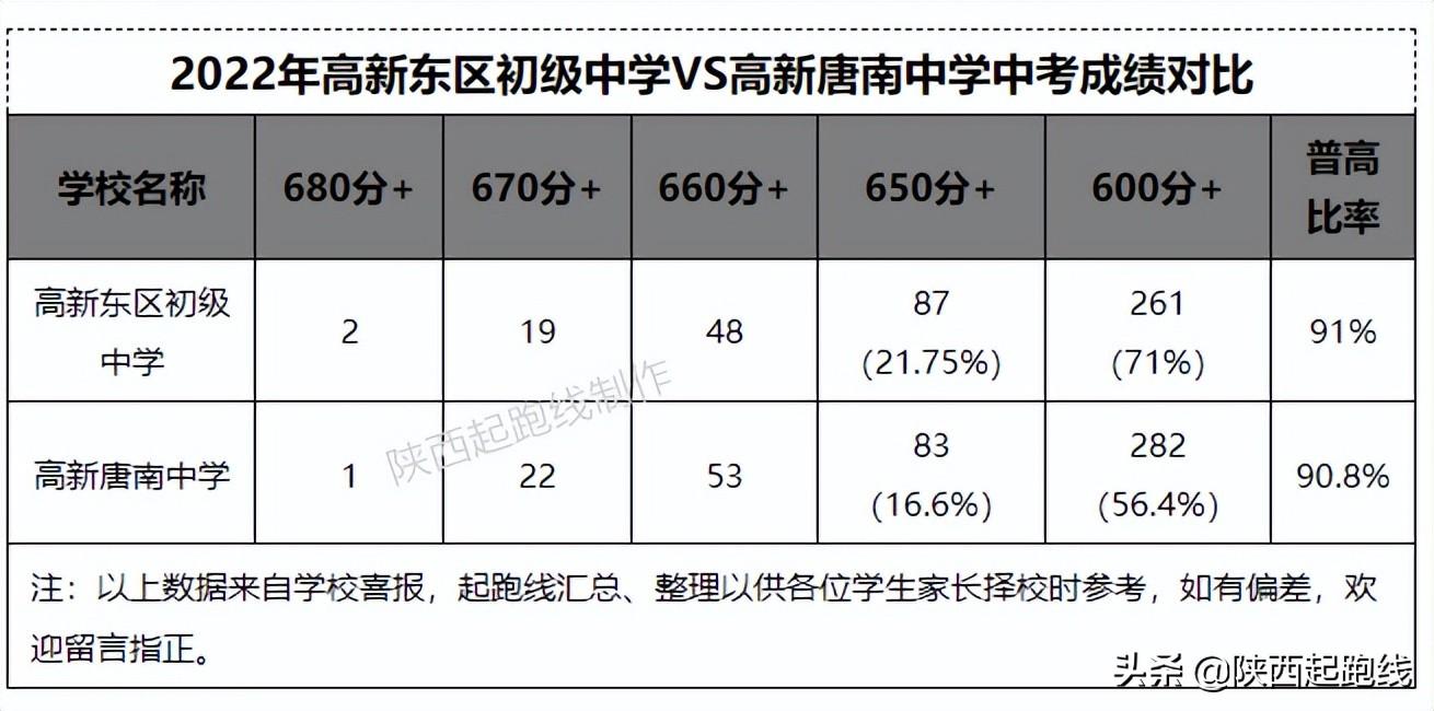 在东校区的喜报中我们发现一个问题,在2019年小升初中,学校的招生计划为400人,那么按照600分以上人数计算,应为65.2%,而学校公示的却是71%,比率高了6个百分点。那么就意味着有大约30个孩子没有参与中考?到底是数据有误,还是另有原因,欢迎大家留言讨论。此外,唐南今年高分段也表现不错,但是相比去年650分以上占比33%,600以上占比75%,普高率94%依旧有所下滑。是否与2019年学校小升初补录有关则不得而知。两所学校曾同为高新一中初中校区分校,随着民转公浪潮波动,逐渐与本部渐行渐远,维持民办,但是学校的成绩依旧具有参考意义。总体来看,高新东区初级中学高分段比率略高于唐南中学,而两所学校的普高率相差不大。