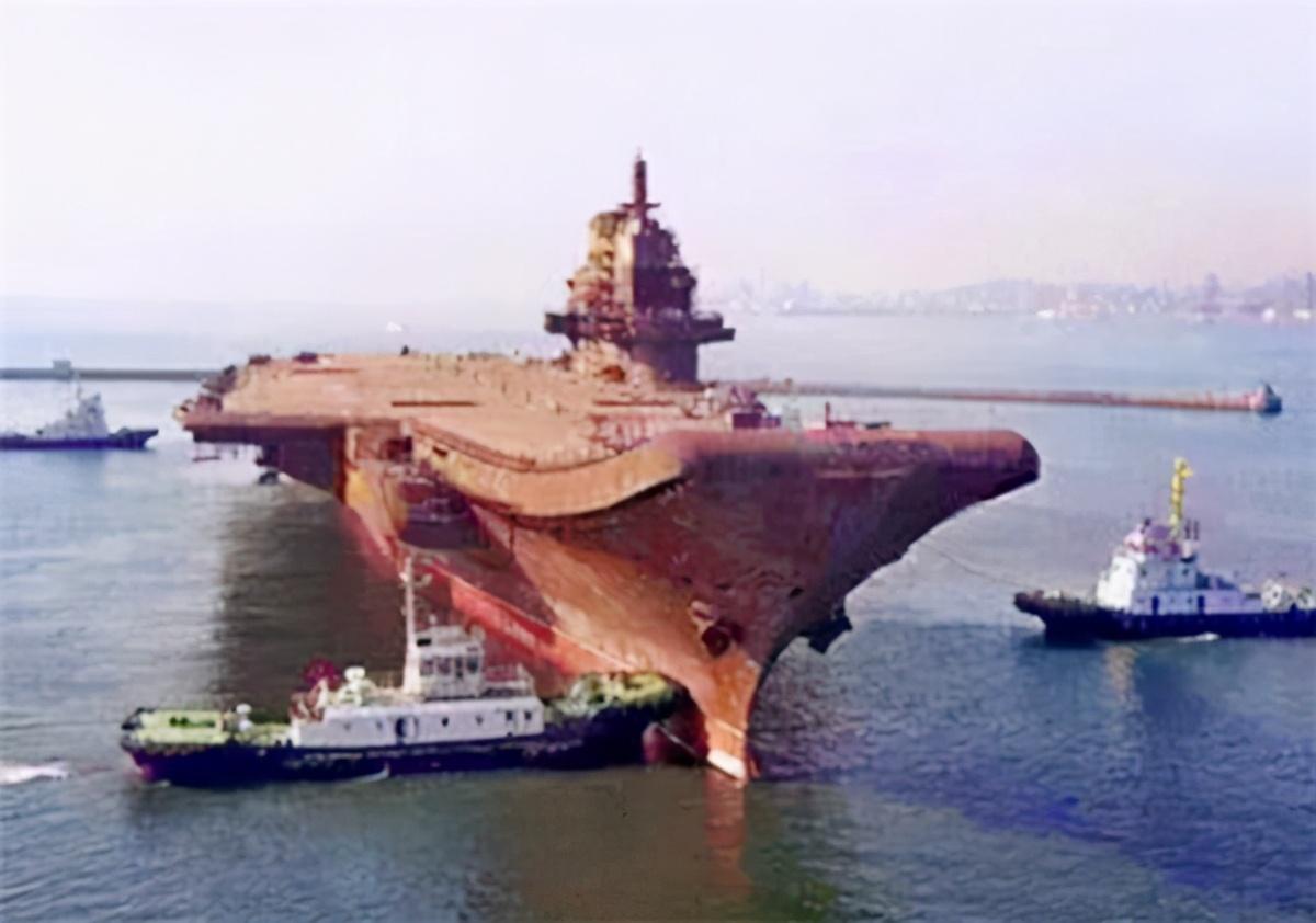 众所周知,这艘航空母舰就是前苏联的未完成的航母瓦良格号。前苏联解体后剩余了三艘未完的航空母舰留在了乌克兰的造船厂,一艘基本完成被俄罗斯开走,一艘刚完成百分之二被美国略施小计,乌克兰中计拆了船体卖了废铁,剩下的这一艘就是瓦良格号航母。