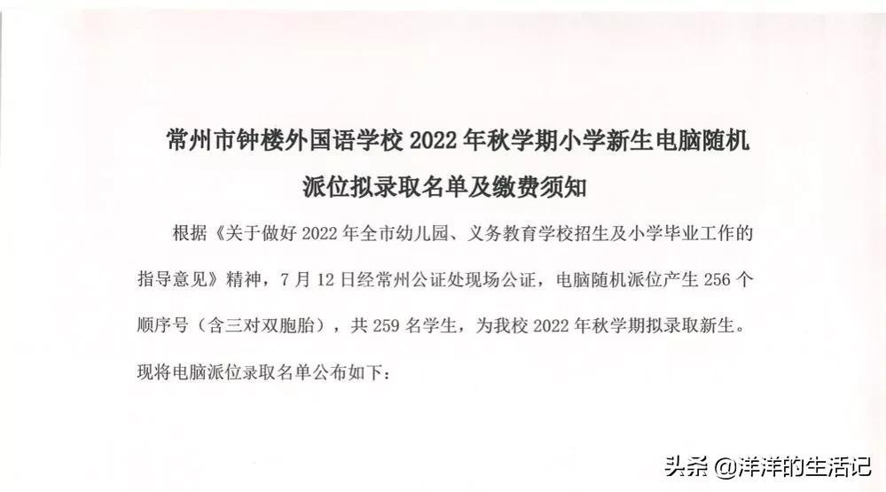 2022年7月12日15时,江苏省常州市十所民办小学,2022年秋季学期新生录取名单向社会公布。
