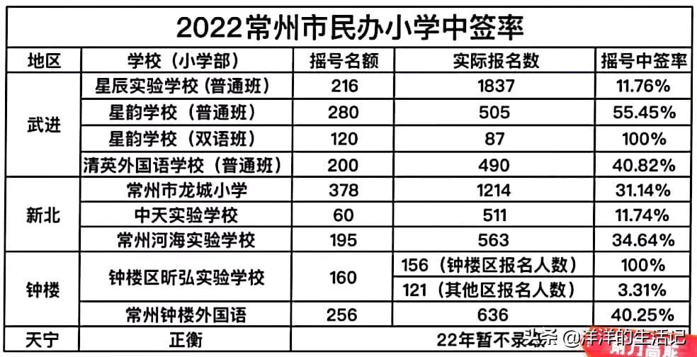 常州市龙城小学:计划招生人数:378人,报名人数:1214人,中签率:31.14%;