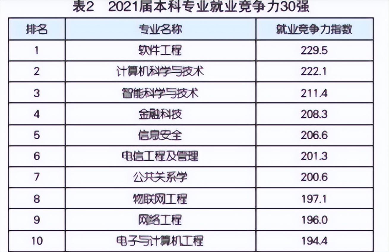 深受大家认可的计算机类专业,确实是好就业专业,在2021届本科专业就业竞争力的30强排名中,软件工程专业的就业竞争力是最强的,是位列第1的位置。