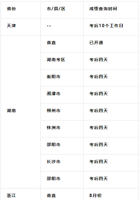 辽宁、浙江、福建、河北、山西临汾、江苏无锡/南京、湖北荆州、广东、宁夏、河南、甘肃、陕西、黑龙江佳木斯等众多地区成绩查询时间出来了......