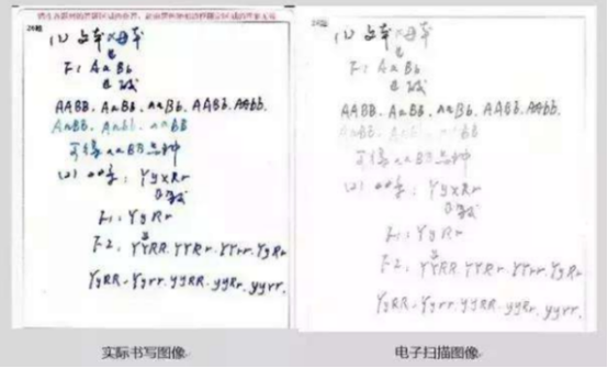 一位高中老师为了切实告诉学生们用2B铅笔涂卡的重要性,特意选用了一张普通铅笔填的卷纸,以及一张2B铅笔填的卷纸,分别扫描时候,对比格外鲜明。