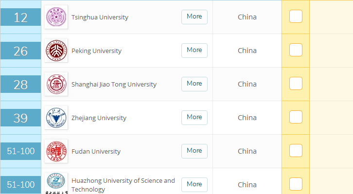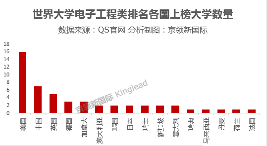 美国有16所高校跻身世界大学电子工程排名100强榜单,是本次上榜数量最多的国家,其中美国排名第1是麻省理工学院,斯坦福大学在美国排第2,加州大学伯克利分校在美国排第3;中国上榜高校数量排名第二,共7上榜,其中中国排名第1是清华大学,香港科技大学在中国排第2,中国排名第3是北京大学;上榜数量第三的国家是英国,有5所高校上榜,其中剑桥大学在英国排第1,英国排名第2是帝国理工学院,英国排名第3是牛津大学。在之后的还有,加拿大第4(3所),德国第5(3所)。