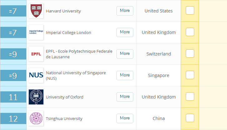 本次共500所世界高校上榜,其中99所为今年新增加的。以下为榜单前十五强: