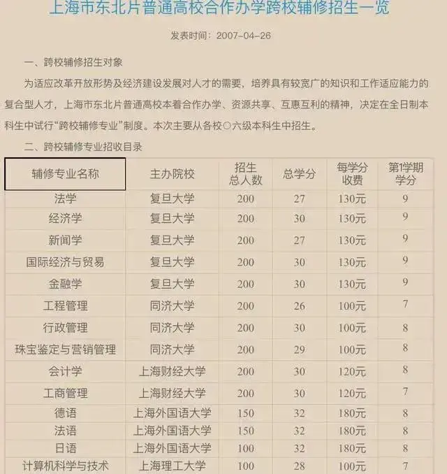 上海部分高校支持辅修/双学位名单如下: