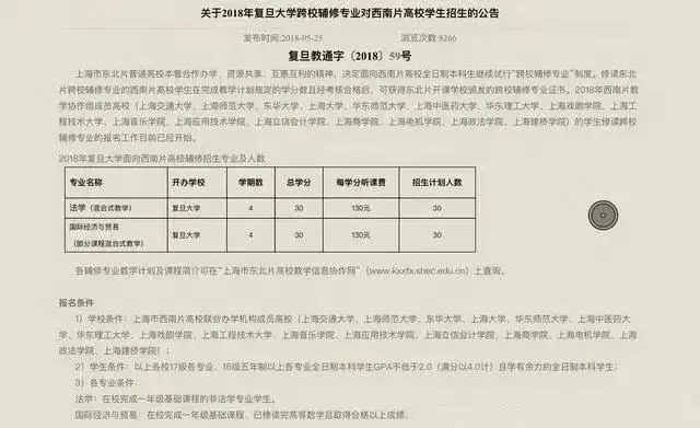 专业:法学、金融、国际经济与贸易、新闻学对象:面向上海西南、东北片区高校本科生证书:外校学生只有结业证书