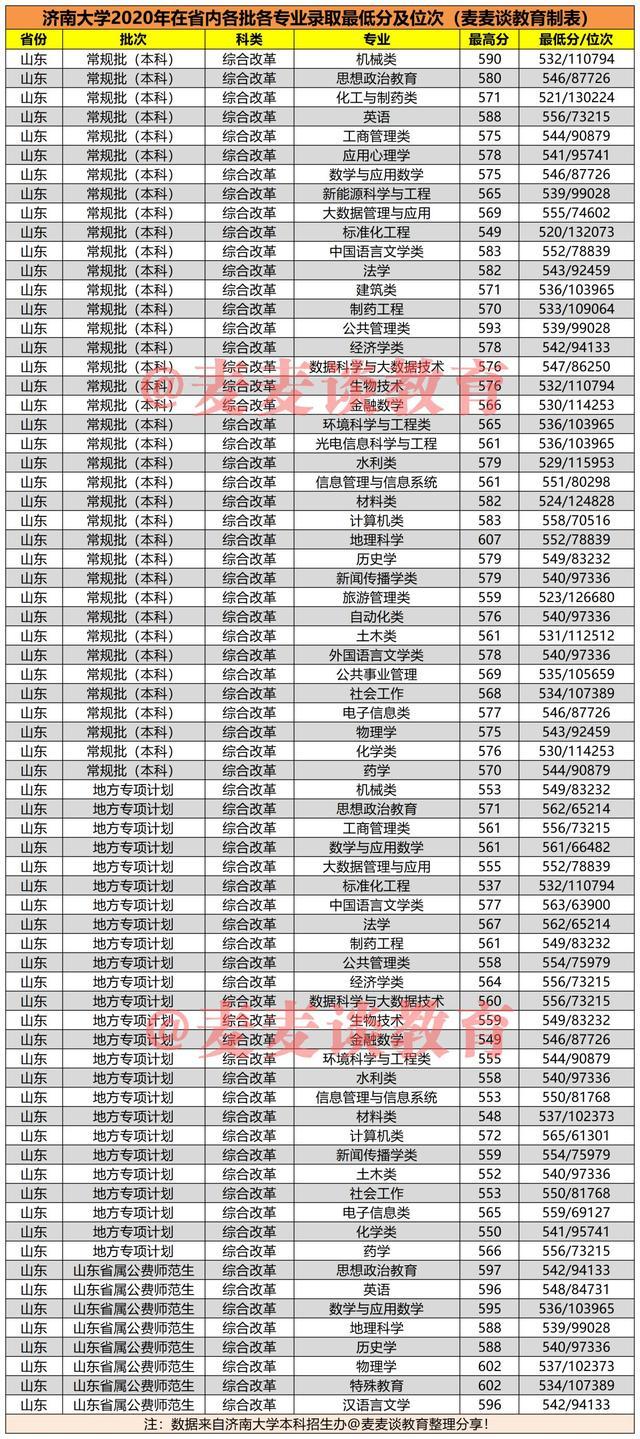 注:文中数据均来自济南大学本科招生办,麦麦仅作分享。如有侵权,请联系删除!