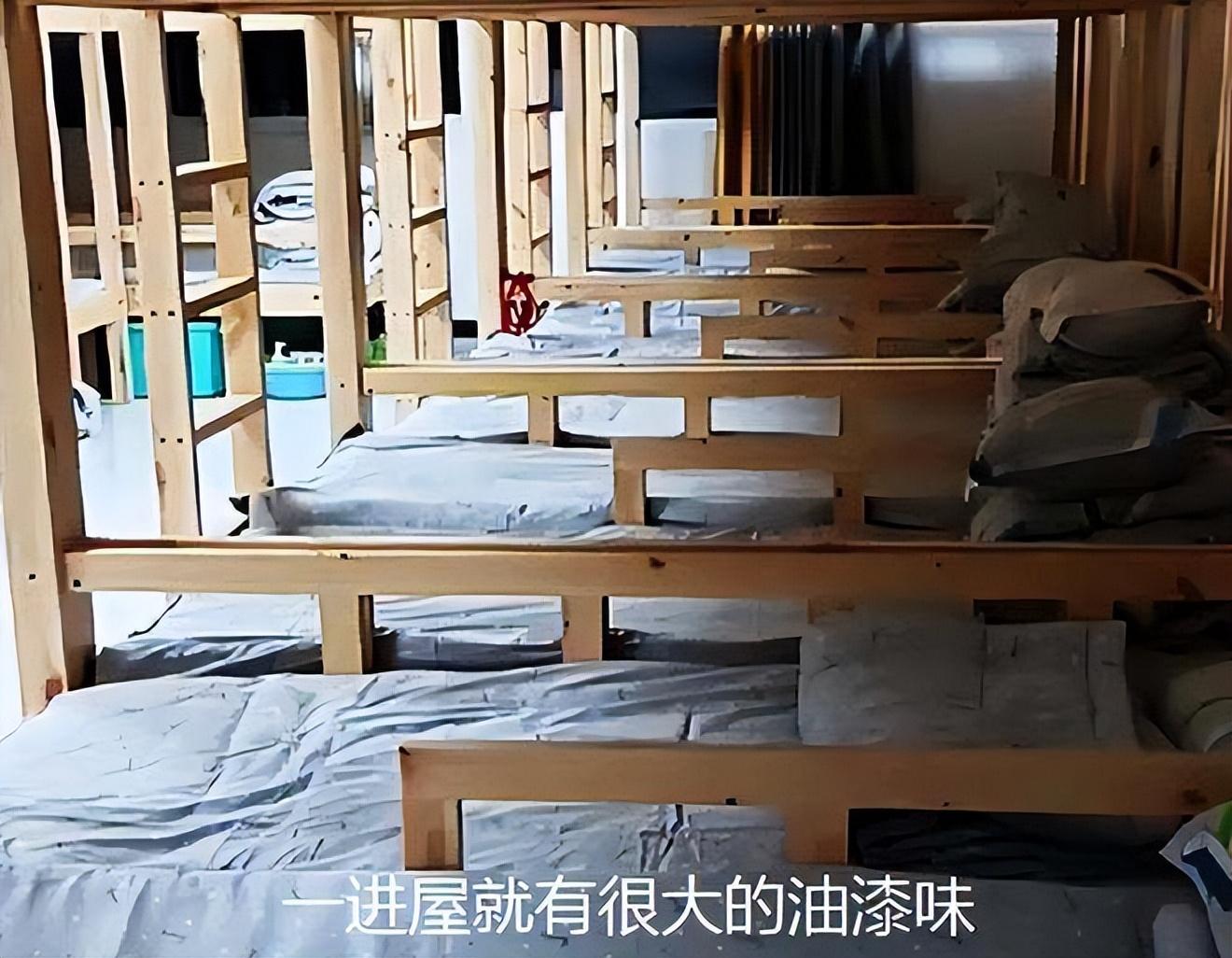 而且这还不算什么,这个仓库一样的,宿舍里面的油漆都还很粘手,一看就是刚刷上去都没干。空气中充斥着一股刺鼻的味道,让人怀疑甲醛超标。