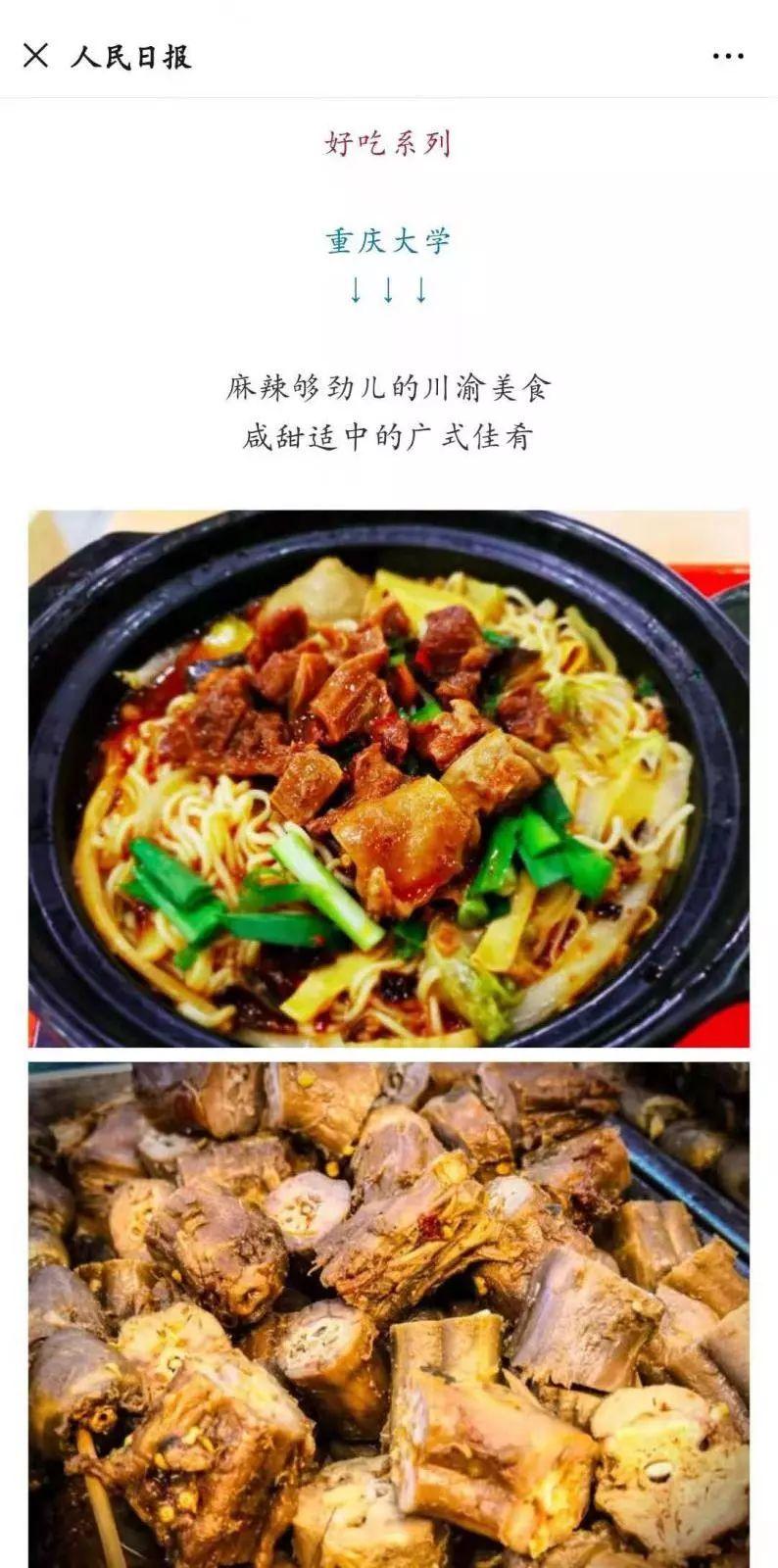 人生能有几多愁,美食尝遍消尽愁。在没能返校的日子里,心心念念的不只校园、朋友和老师,还有那"三点一线"中必不可少的食堂。坐落在网红之城、美食之都的重庆大学,在得天独厚的城市环境影响下,其校园美食又怎能逊色?要知道重庆大学的美食,可是被人民日报、新华网看在眼里的: