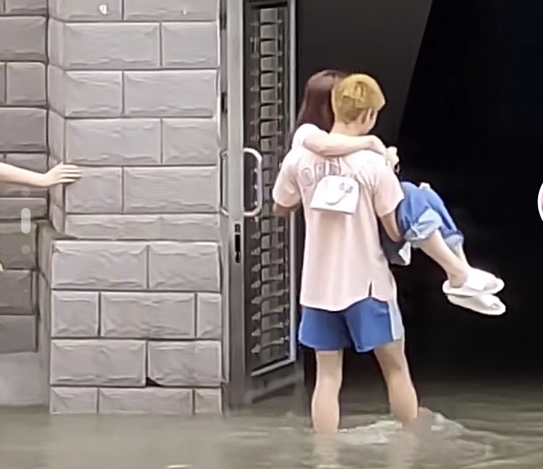 没对象的都在桥上看水,有对象的都在男友们的保护下进了楼,这个时候真的是尽显男友力,女生们的鞋子干干净净一点没有沾湿,而脏水都没过了男生的小腿,真是辛苦了男生们。
