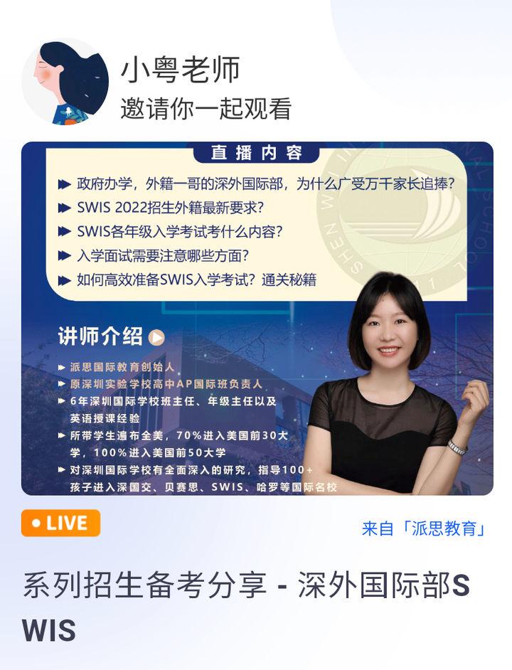 高质量国际家长交流互动!关于深外国际部SWIS的招生分享,家长们列出了关心的几个问题,最后的答疑环节,尹老师一一解答①深外国际部,接受内地身份吗?②SWIS的班级学位以及老师配置是怎样的?③已有的三届录取成绩如何?和贝赛思比,如何?④如何更精准的申請到SWIS初中部学位?……