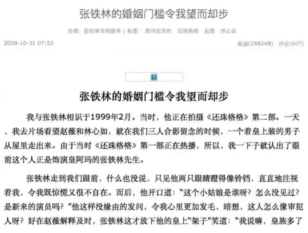 多年后,法提麦·雅琦在博客中写了一篇《张铁林的婚姻门槛令我望而却步》。