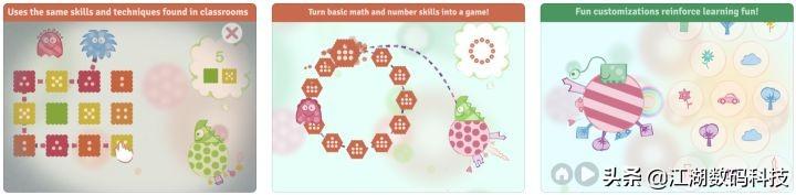 系统给出不同长度(1-10)的怪物,通过切割、重新组合,将怪物组合成需要的形状即可过关。在玩的过程中,训练孩子对于10以内加减法的熟练度。10以内搞定了可以继续玩 DragonBox Big Numbers。