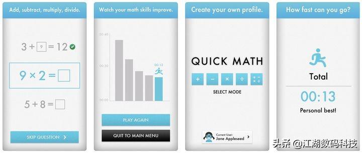 作为数学基础概念的普及还是不错的,颜色鲜活,造型可爱。比如Shiny Bakery,烘培游戏,让孩子理解基本数量的概念;Shiny Circus,让孩子认识大小、多少、长短的概念;Shiny Party,让孩子认识形状。Quick Maths Jr.,相对系统性的数学学习。Quick Math,口算练习;