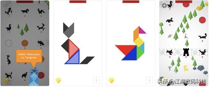 需要配合Osmo的硬件才能使用,Osmo硬件可在苹果商店购买。用七巧板拼出指定的图形过关,比较联系孩子的观察能力和手眼协调能力。