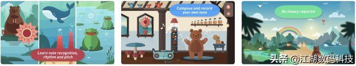 跟着画面里的动物敲击音乐,让孩子重复各种节拍,寻找各种音色和旋律,甚至撰写自己的音乐。