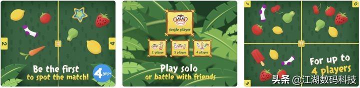 少见的双人或多人游戏,可以大人孩子一起玩。游戏本身很简单,就是找相同的物品,但游戏的对抗性会激发孩子的好胜心,玩的时候注意既不要让孩子输的太多,又不要让他一直赢,是个让他学习正确面对失败的好机会。