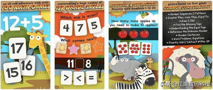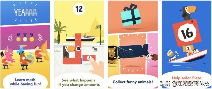 2. Eggroll Games LLC厂牌下的App,比较推荐Animal Maths系列,从学前班(Pre-K)到2年级(Grade 2),数学游戏,适合3-5岁,英文界面,免费(有内购)。
