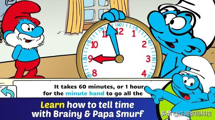 教孩子认识时间。孩子扮演一个农场主,根据需要不断调整时间,调整正确才能获得相关的饲料来喂动物。整个场景还算有趣。另一个比较好的教孩子认识时间的App是Smurf Time。