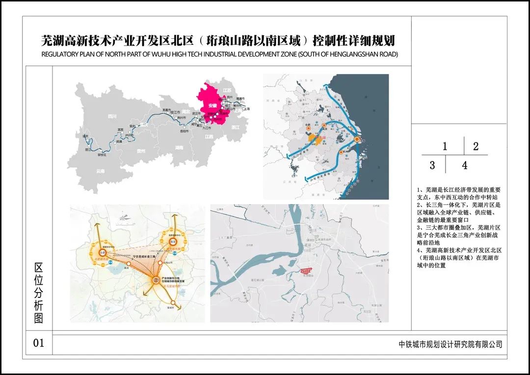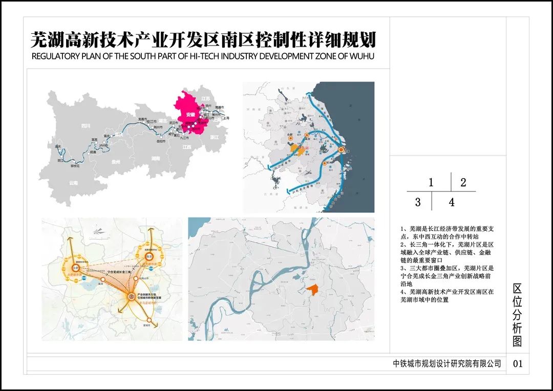 片区定位为:“集生态、创新、智慧于一体的现代化新园区,未来芜湖市的创新创业核心区、创智研发先导区、商贸服务样板区”。