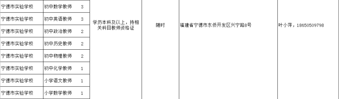 日前,宁徳市民办教育协会汇总了各县(市)民办中小学校教师招聘需求,共有宁德北大培文学校、宁德市实验学校、福建宏翔高级中学、福安市德艺学校、霞浦县福宁学校、福安扆山中学、霞浦树人实验学校等7所学校需要招聘小学、初高中语数英等学科教师80人。现将《2020年宁徳市民办中小学校教师招聘需求表》发布如下(详见附件),有意向者直接与招聘学校联系。