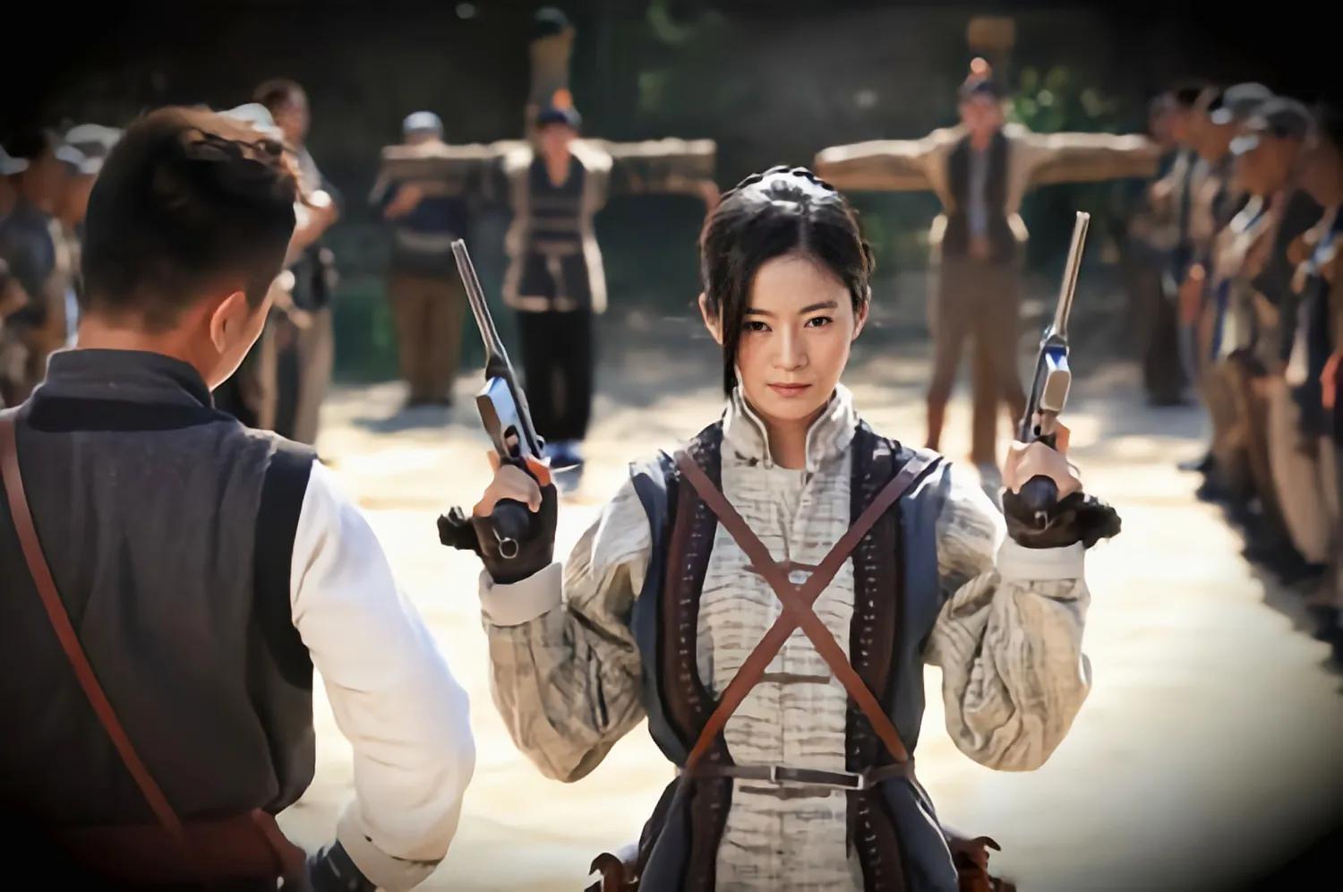 不过比起她的古装,她在抗战后剧中的表现更加让人印象深刻,《战旗》中饰演作战勇猛的第九大队巾帼队长戴金花。