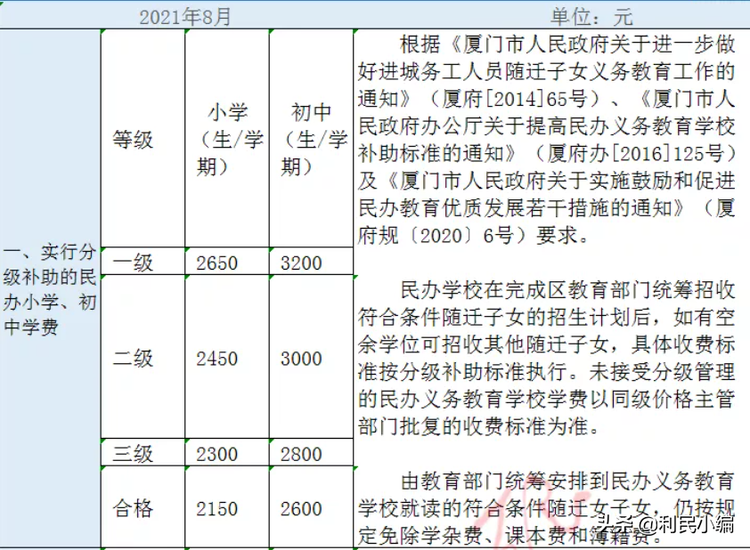 先说下2021年厦门的中小学收费标准,文末会盘点厦门部分民办校的奇葩代办费(座椅费)!这类情况在公办校是不会发生的。