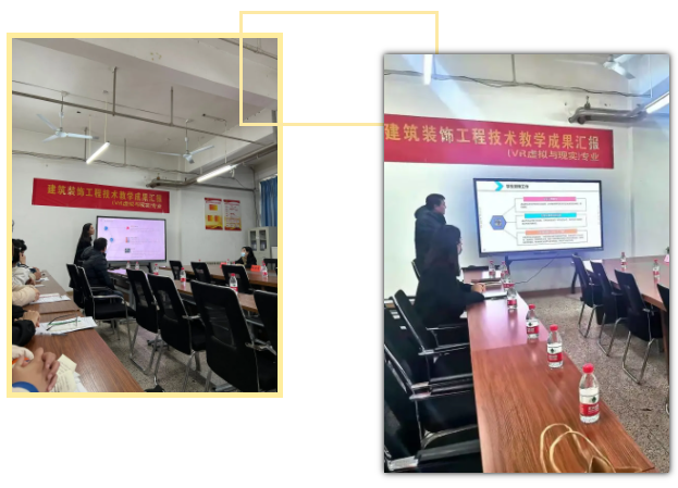 为展示建筑装饰工程技术VR虚拟与现实专业第一学年在教育教学上所取得的优异成绩,12月24日,由河南拓晋牵头发起的建筑装饰工程技术教学成果汇报会在新乡职业技术学院会议室隆重举行。建筑工程系主任郑学工、副主任蔡韩英、书记夏莹、校企合作办学副主任刘宏愿及河南拓晋副总朱超飞、校企合作项目负责人李珊、各班优秀学生代表出席了会议。