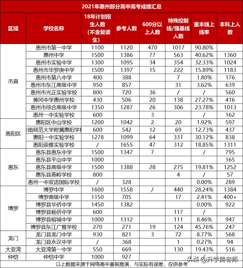 近日,黄老师的文章下面有很多家长称惠州一中更加应该叫惠城一中,原因是惠州一中的招生名额基本都划分给了惠城区,分给惠州其他县区的人数按2022年中考的划分,其余县区加起来仅有200人如果加上创新班实验班及特长生,其他县区的共有320个名额可以上到惠州一中,而惠城区的名额是1300人,这期间的差距无疑是非常巨大的,也是让家长们所不理解的。那么今天黄老师就来探索下为什么惠州一中只在惠城区进行大量的招生,而不能进行全市招生