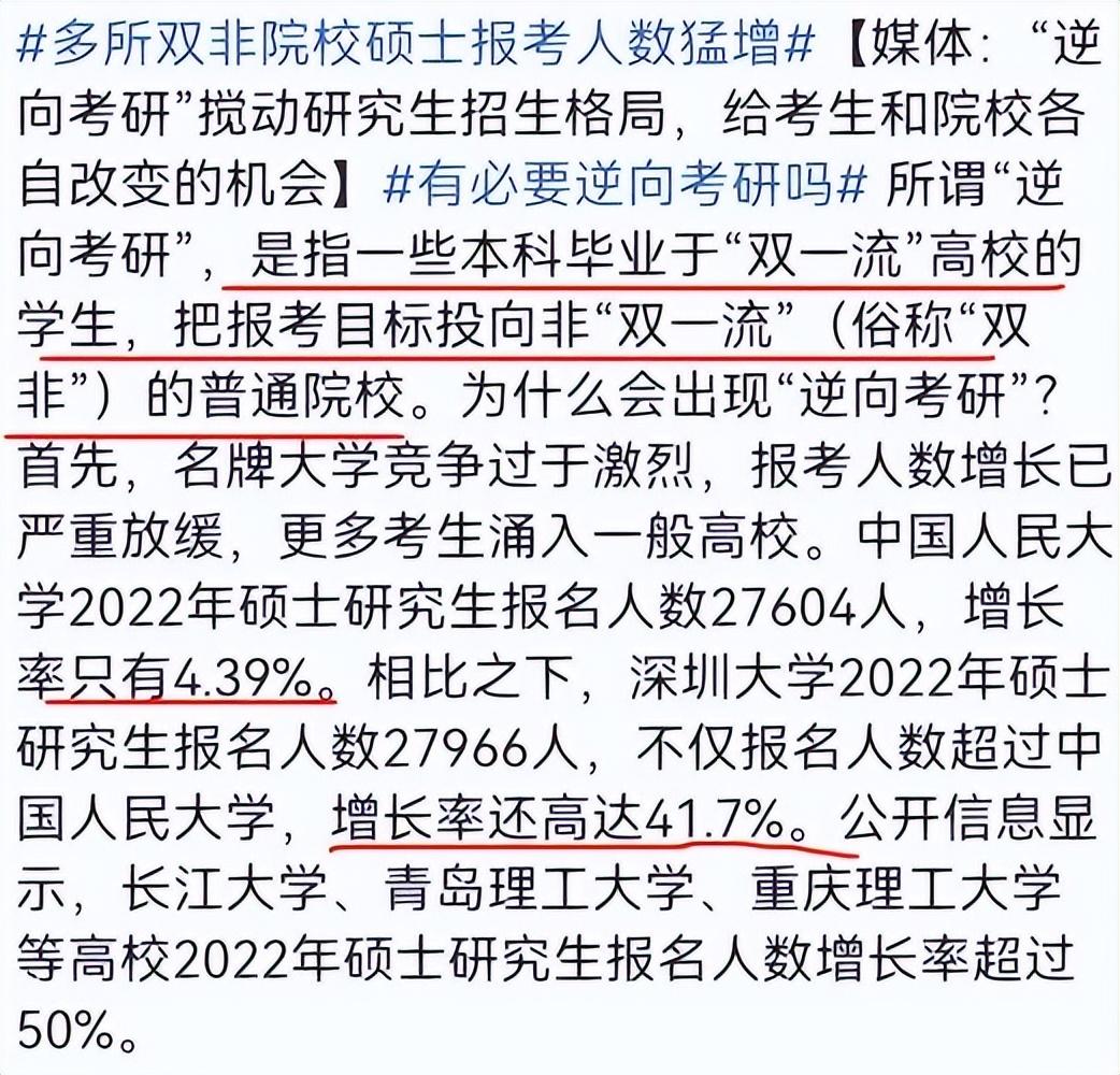 不过从2023年的报考现状来看,今年有望出现“逆向考研”。也就是说报考双非学校的人数大增,此话并不是空口无凭。