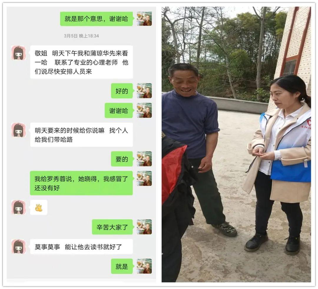 3月4日上午,东岳镇团委获悉这一情况后,立即向团市委报告,并及时与大垭村童伴妈妈蒲琼华取得联系,希望她能上门对小明进行开导。蒲琼华是一位非常有责任心和爱心的童伴妈妈,在与小朋友相处方面很有办法和经验,曾多次帮助留守儿童走出困境。听到有孩子不愿进校,她焦急万分,立马接下这一重任。