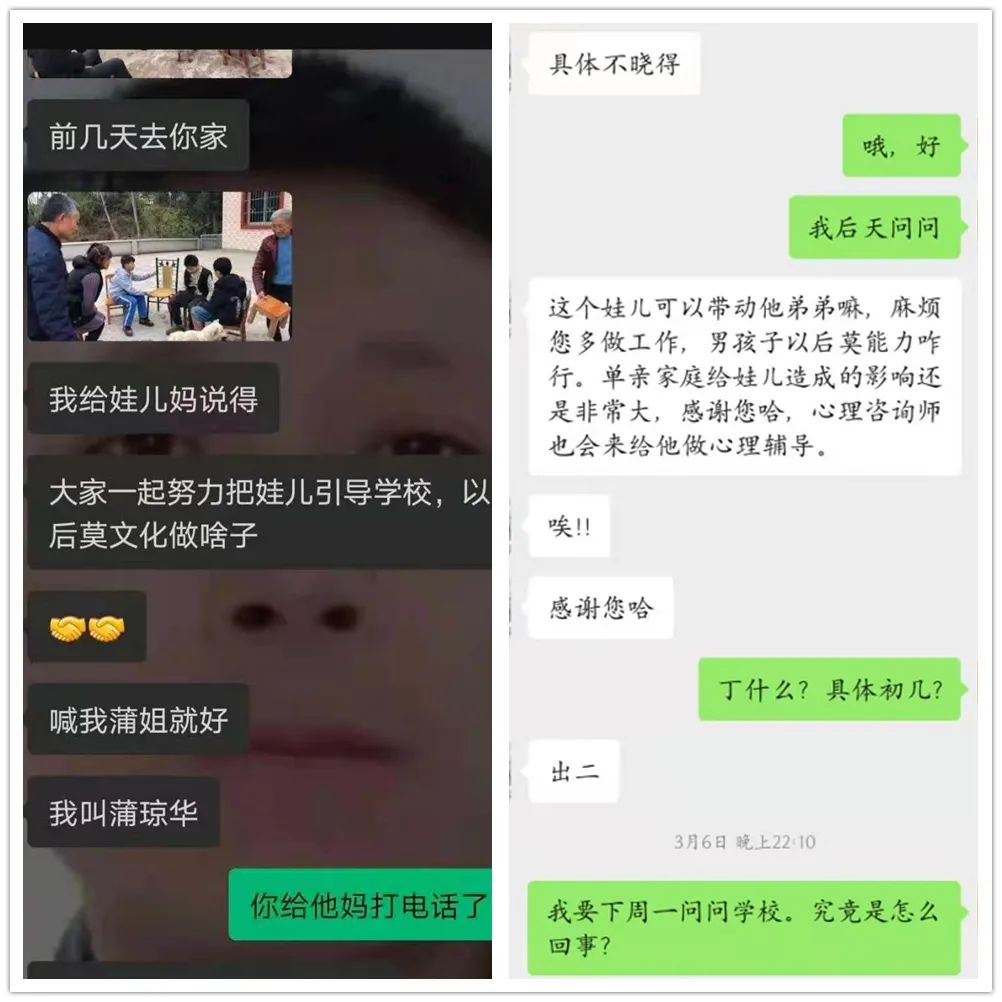 童伴妈妈、同学、班主任老师一行人到家中开导小明
