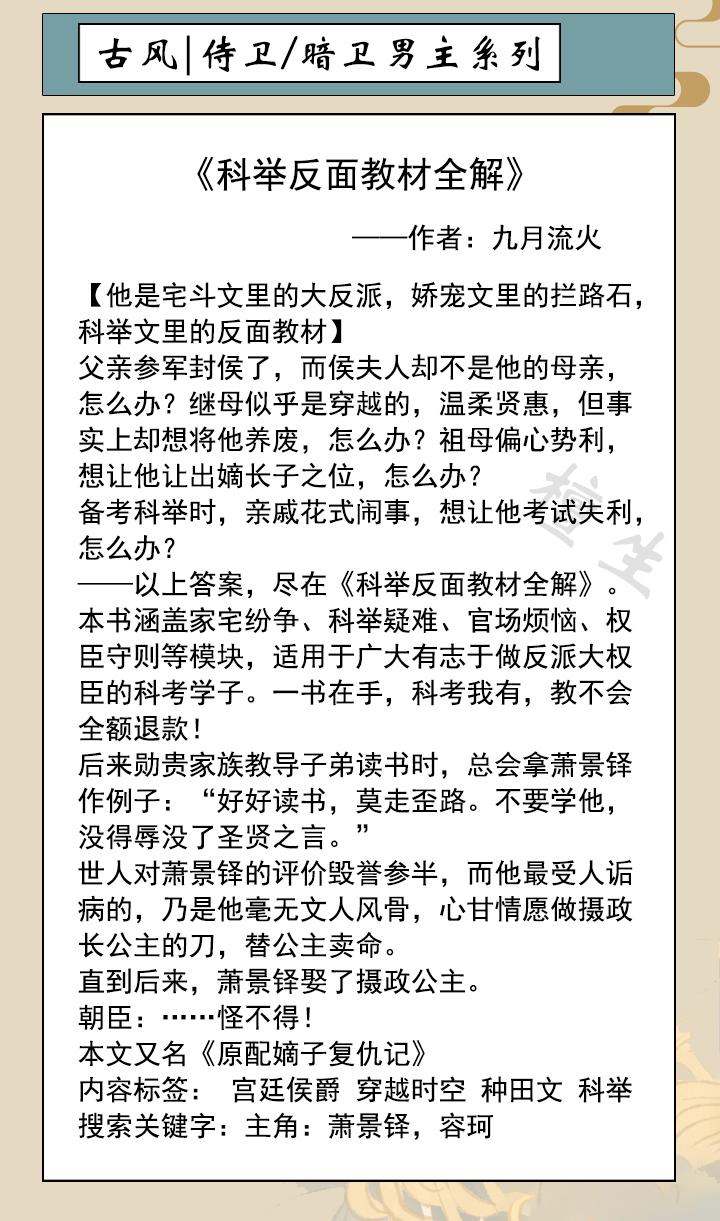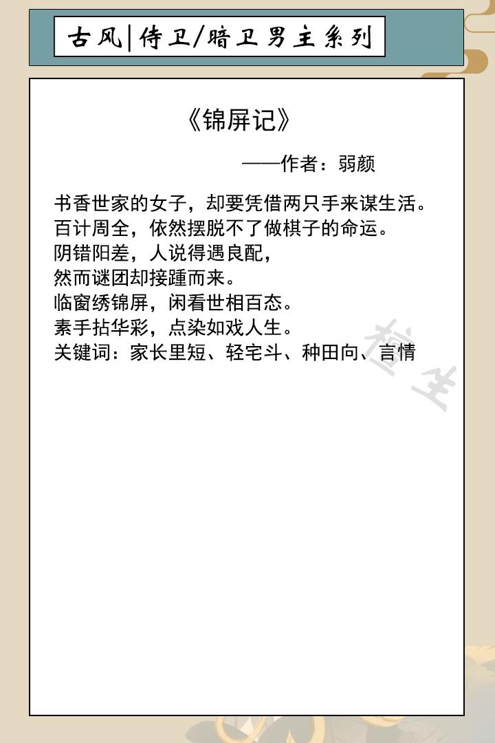 五本男主是侍卫暗卫系列古风小说推荐,献给喜欢阅读的书友们!