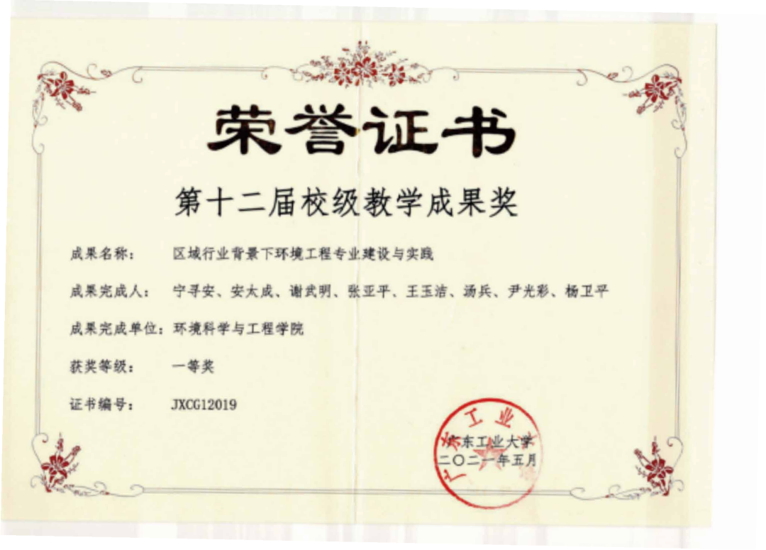 学院党委获“广东高校‘党建工作标杆院系’”,环境健康与污染控制研究院党支部获“广东高校‘党建工作样板支部’”和广东省五一劳动奖状。学院党委书记杨卫平获广东省研究生德育工作先进个人。安太成教授获全国模范教师、广东省五一劳动奖章和优秀共产党员。宁寻安教授为南粤优秀教育工作者、广东省教学团队和一流本科课程负责人。陈江耀教授获广东省青年五四奖章。学院教师先后获广东省高校思想政治工作实践优秀案例一等奖、优秀论文一等奖等6项,指导学生在省各类主题教育活动中获优秀以上奖9项。