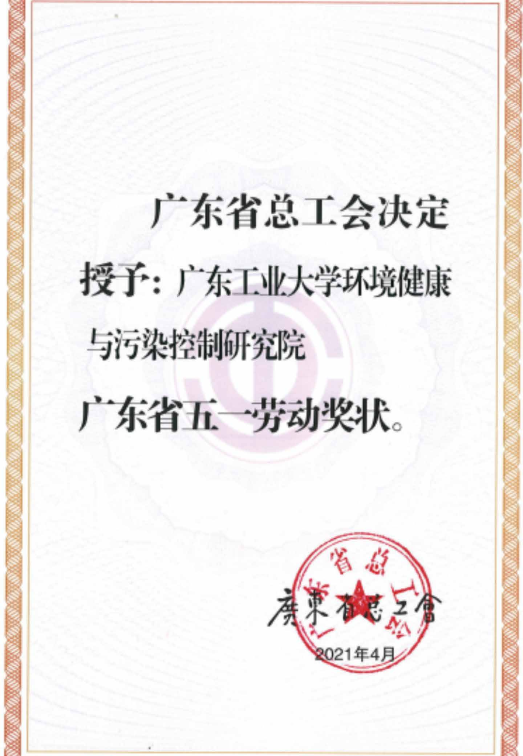 环境健康与污染控制研究院获广东省五一劳动奖状