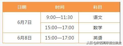 文化课实行全省统考,试题由省招办依据现行职业高中教学大纲命制。考试时间安排如下: