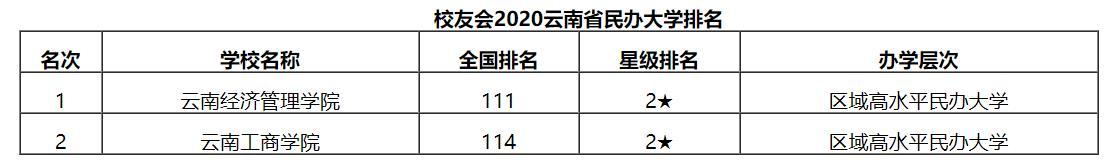 据中国校友会网(艾瑞深中国校友会网 )发布的2020中国大学排行榜中,民办大学排行榜中,云南省仅有2所民办大学进入排名!
