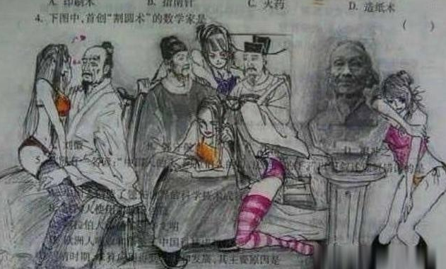 初中生的想象力能达到什么级别?看到这个涂鸦大家就能明白,同样都是一个历史人物,但是在初中生笔下就变得格外不一样。