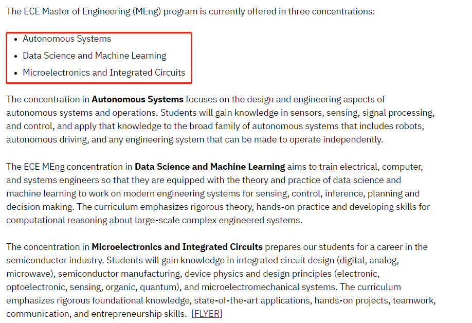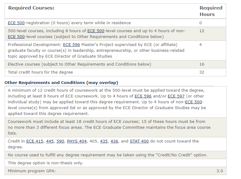 具有电气和计算机工程,机械工程,计算机科学,物理学,应用数学或相关技术领域的学术背景;雅思不低于7.0;托福不低于90分,其中口语不低于22,阅读和写作不低于20,听力不低于15;不强制要求提交GRE成绩。伊利诺伊大学香槟分校是著名的工科强校,其ECE项目隶属于工程学院的电气与计算机工程ECE系下,时长1.5年,UIUC 作为CS顶尖强校,大多数人申请ECE也是奔着转码去的,选课比较友好。