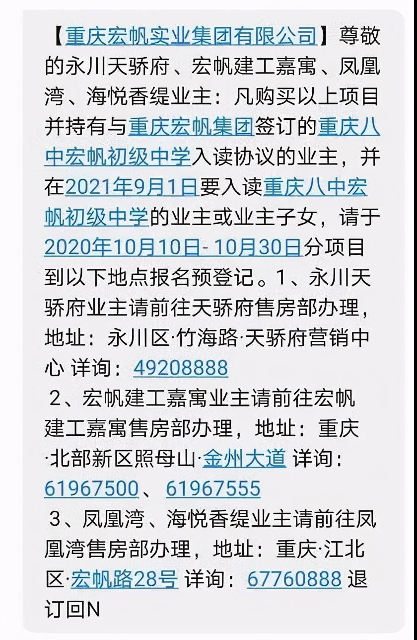 鼎鼎有名的宏帆八中应该是不少家长的目标学校,这个学校的初中算是重庆较好的了,竞争还是较大。入学就读方式有多种,最轻松的应该就是业主生了。2020年计划YH:401人